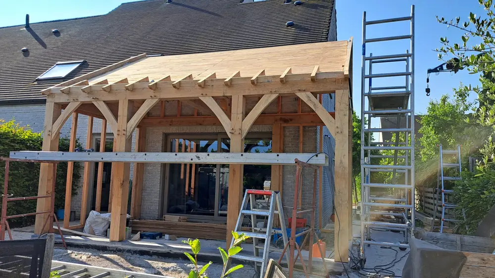 Pour une nouvelle maison de caractère à Pelt, SD Algemene Schrijnwerkerij a fourni l'ensemble de la toiture et des boiseries extérieures, notamment une extension, des lucarnes et une pool house artisanale.