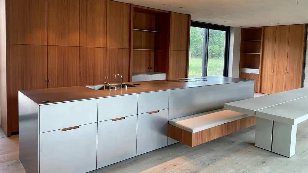 In Aarlen realiseerde Jean Warnimont een uitzonderlijke, volledig op maat gemaakte keuken voor een particuliere klant-binnenhuisarchitect.